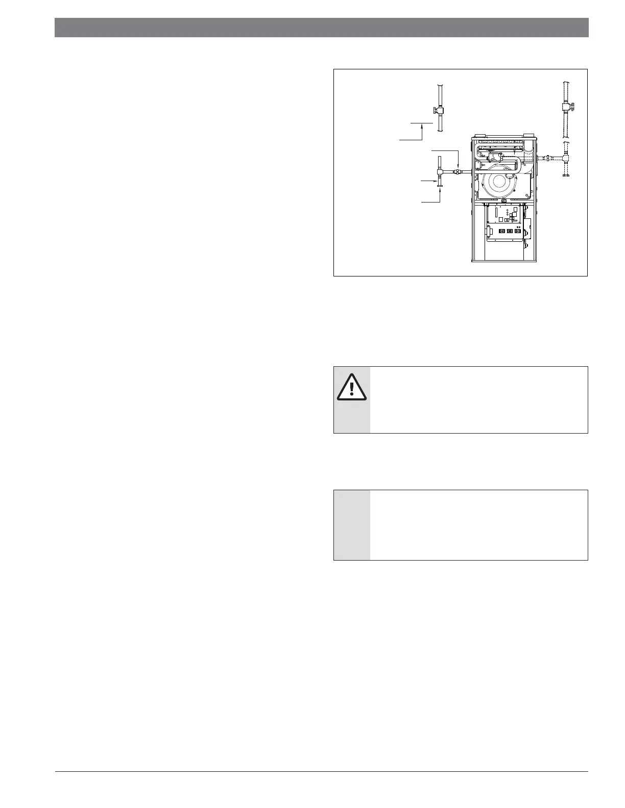 When the gas piping enters through the left side of the furnace, the installer must