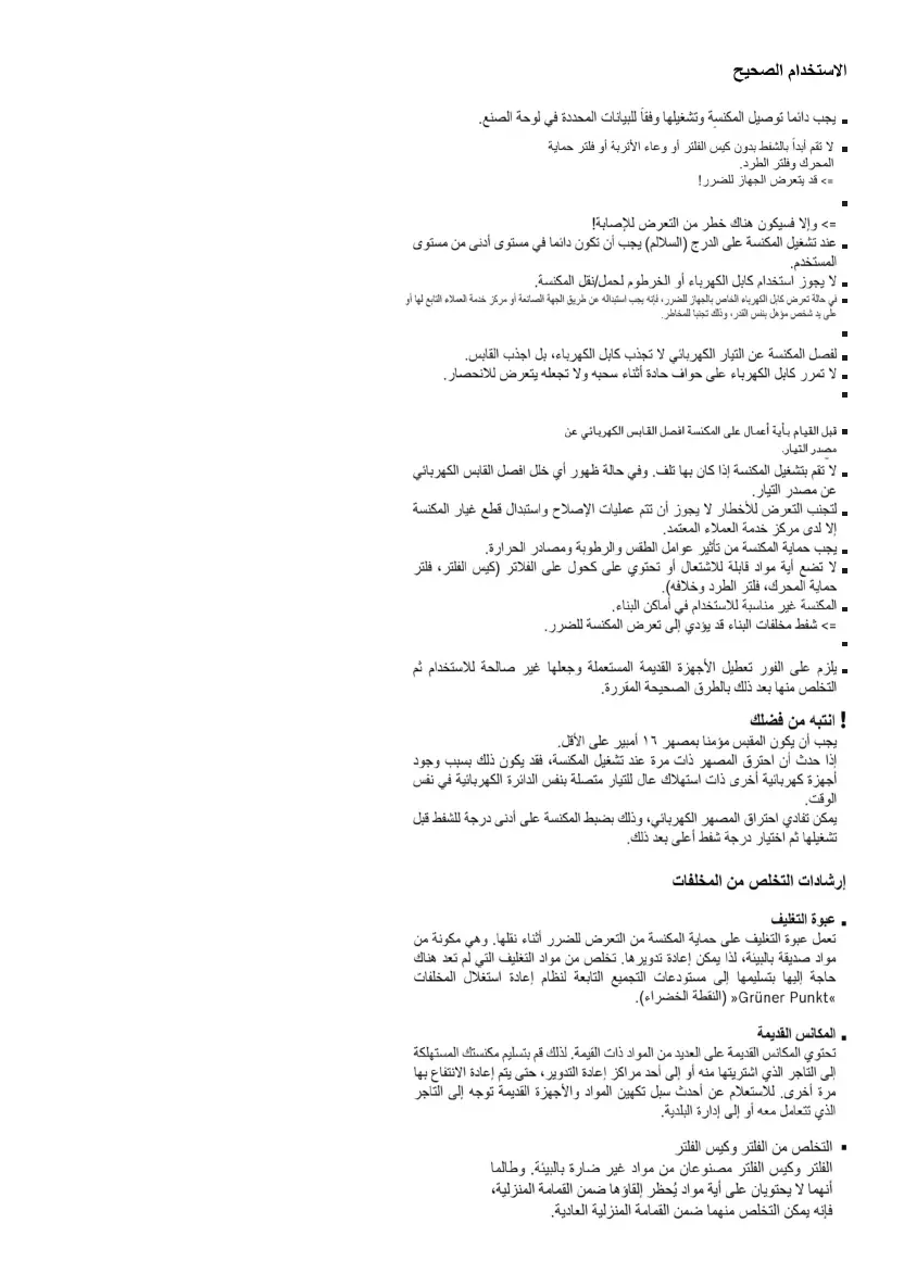 أوقف الجهاز واسحب القابس الكهربائي في حالة عدم القيام بالشفط.