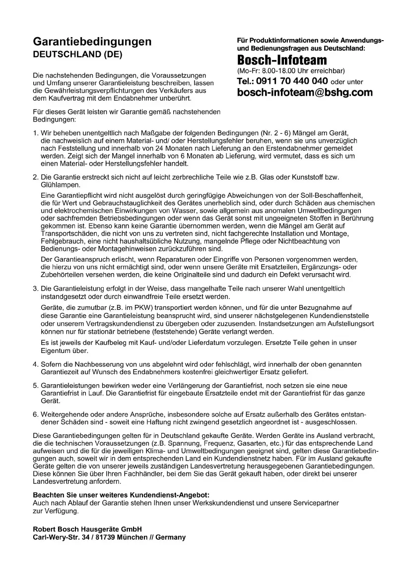 Bosch BGL3B112 - Garantiebedingungen DEUTSCHLAND (DE); Bosch-Infoteam
