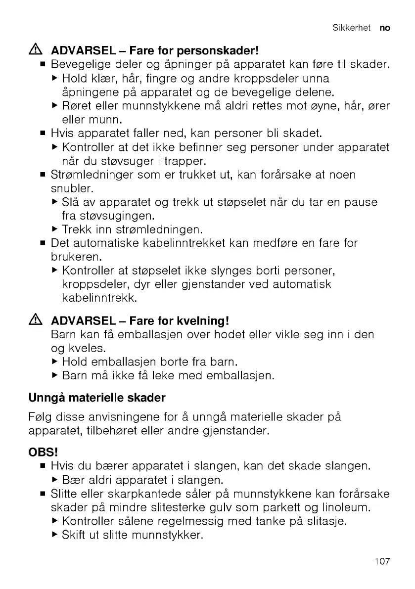 Bosch BGL8PET2 - Unngå Materielle Skader