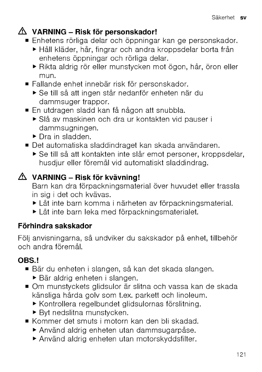 Bosch BGL8PET2 - Förhindra Sakskador