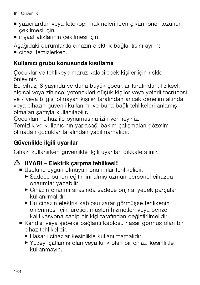 Bosch BGL8PET2 - Güvenlikle Ilgili Uyarılar; KullanıCı Grubu Konusunda Kısıtlama
