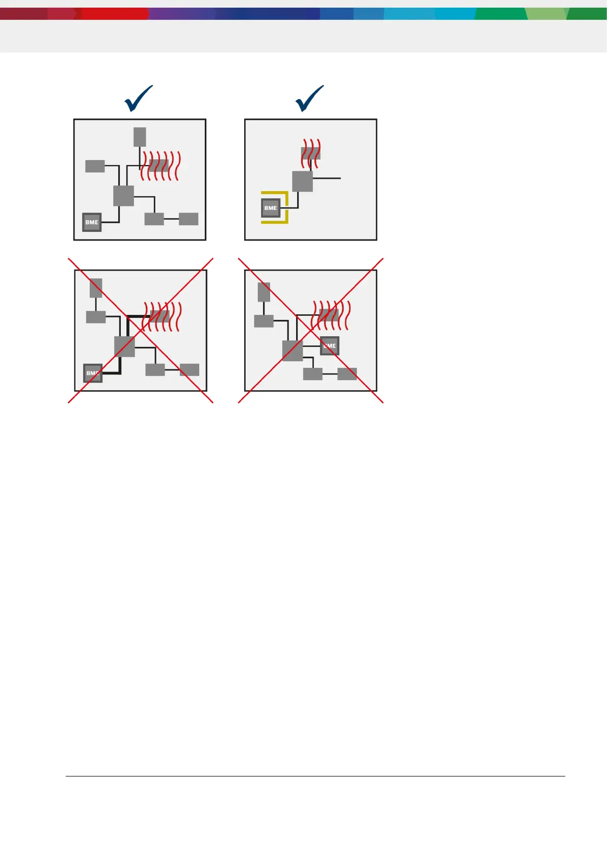 sensor and should be avoided (left bottom). Heat sources close to the sensor will heat-up the sensor (bottom right).