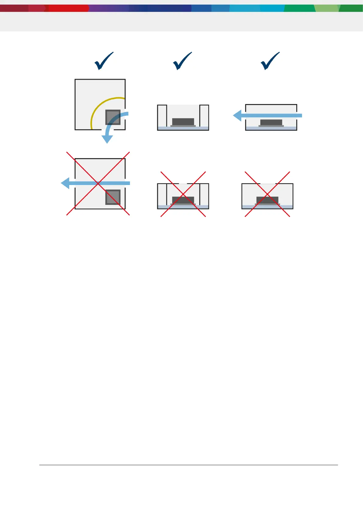 an accurate air circulation (bottom middle). Large dead volumes have to be minimized (bottom right).