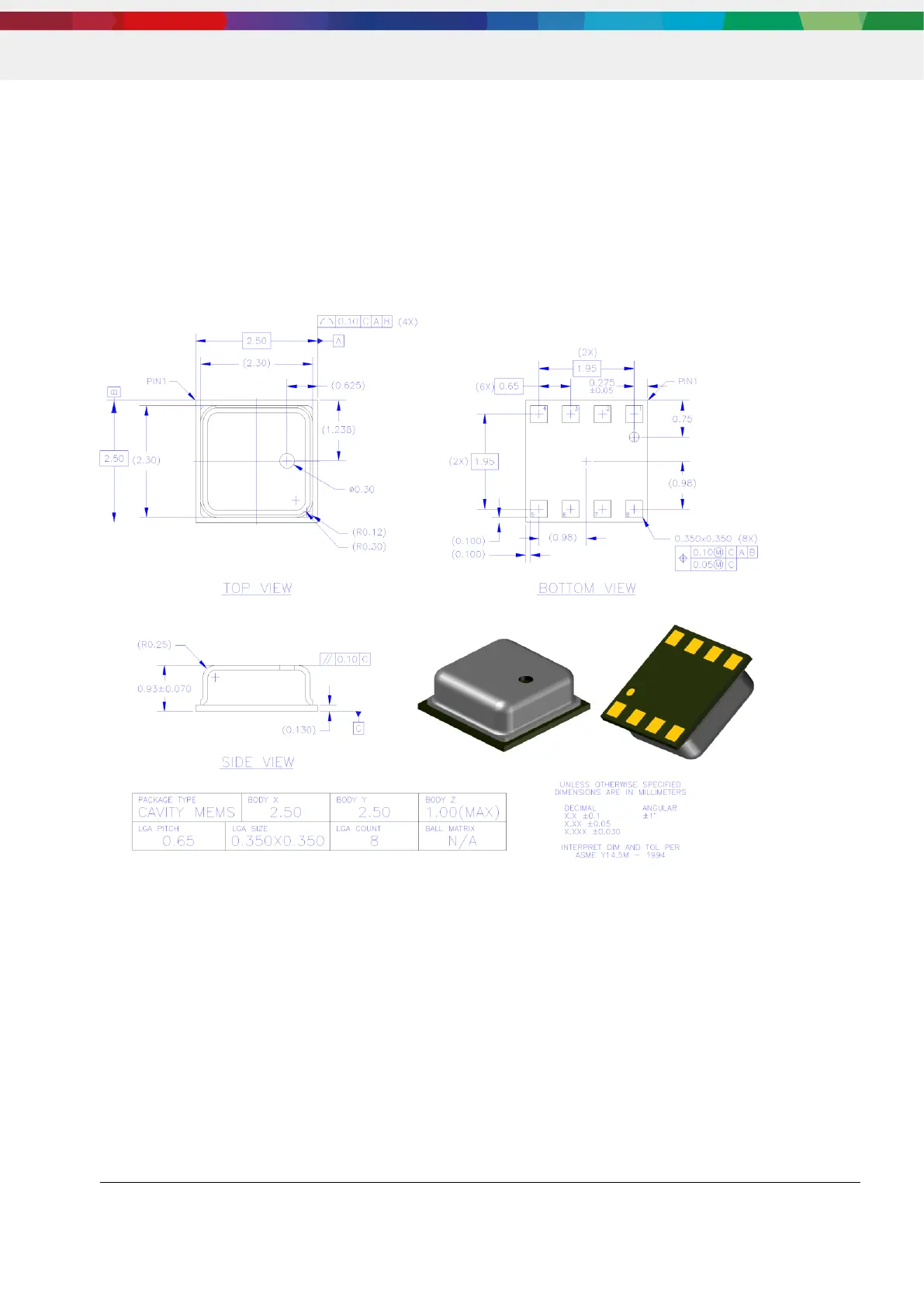 The sensor housing is a standard 8-pin LGA package with metal lid with a vent hole for pressure and