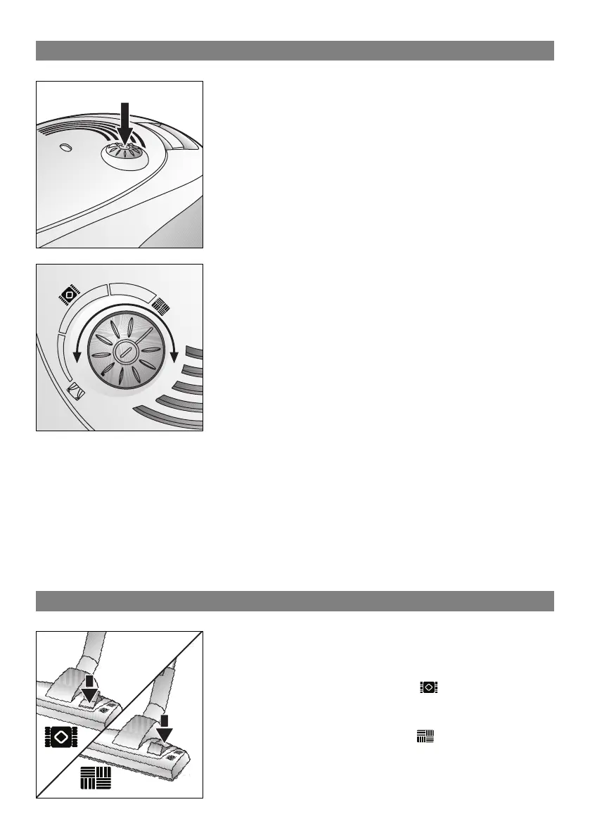 Encender / apagar el aspirador accionando la tecla de
