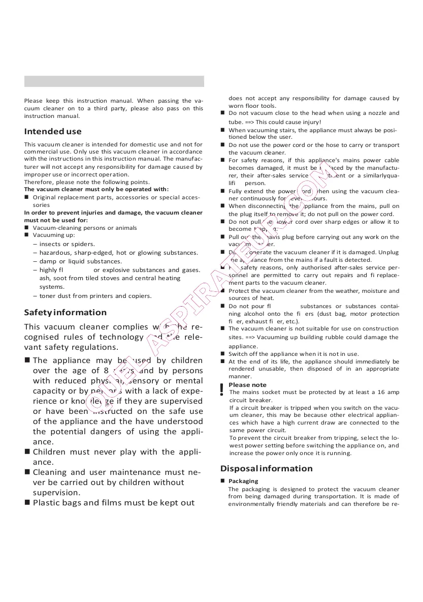 cuum cleaner on to a third party, please also pass on this