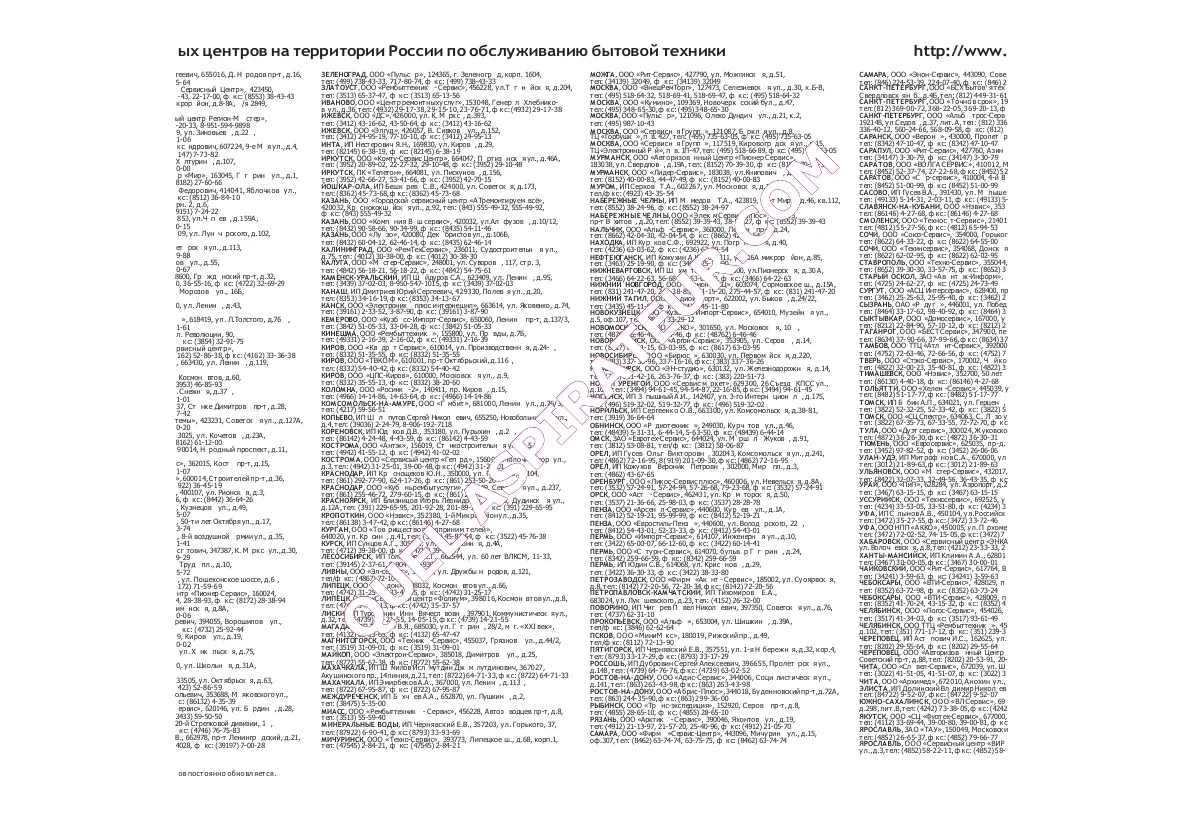 Адреса сервисных центров на территории России по обслуживанию бытовой техники http://www.bsh-service.ru