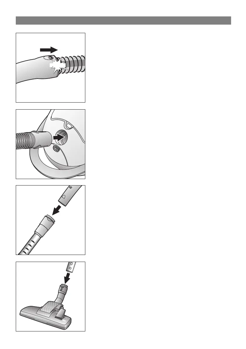 Encaixe e prenda a pega no tubo flexível de aspiração.