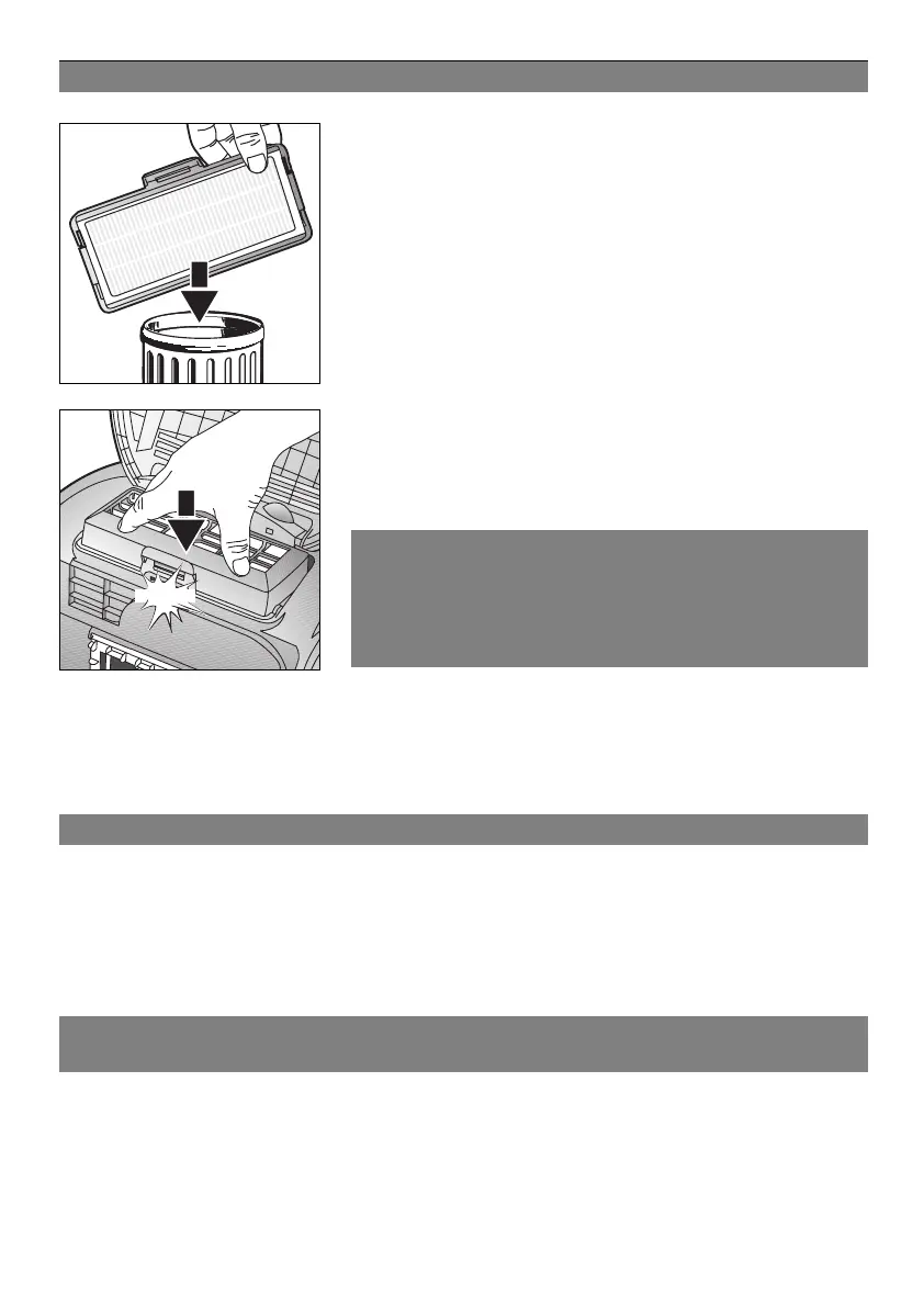 Insérer le filtre Hepa neuf et l’enclencher.