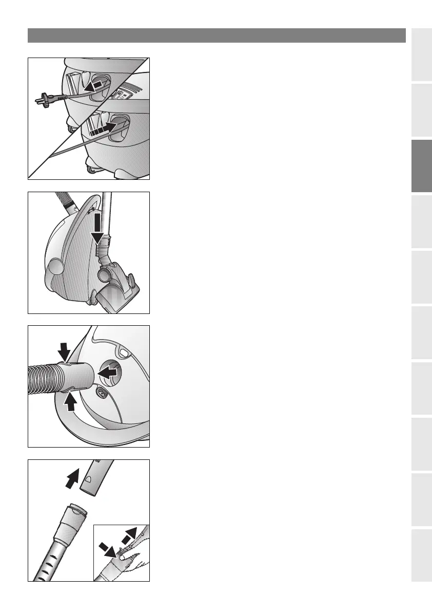 vervolgens loslaten (het snoer rolt automatisch