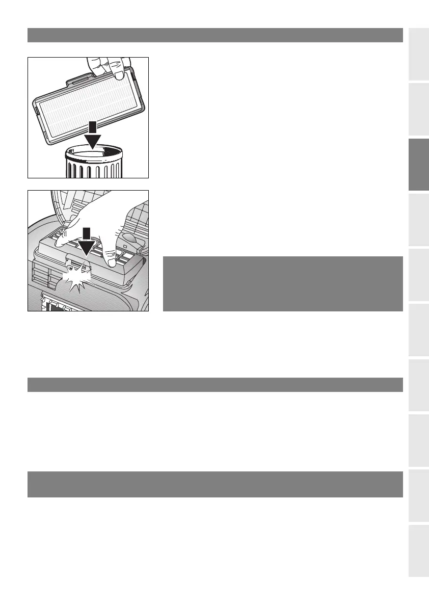Het nieuwe Hepa-filter plaatsen en hem in laten