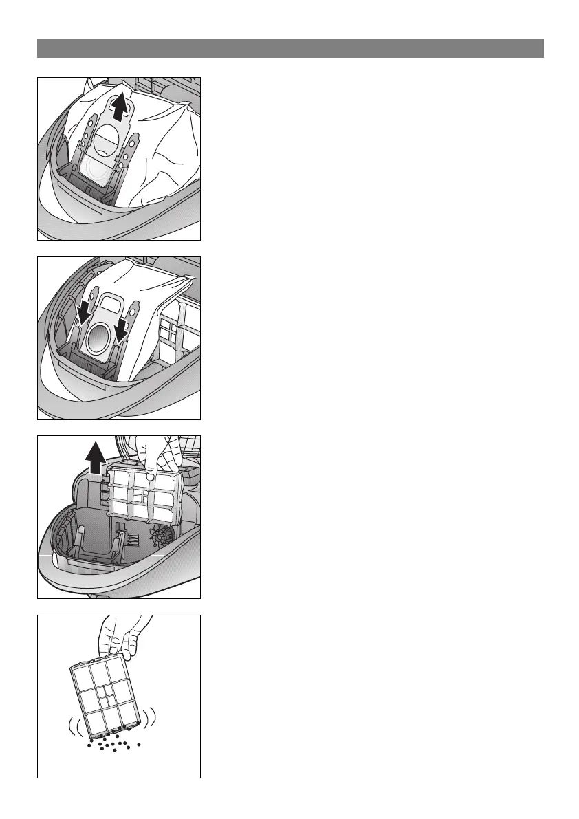 Chiudere il sacchetto filtrante tirando la linguetta di chiusura