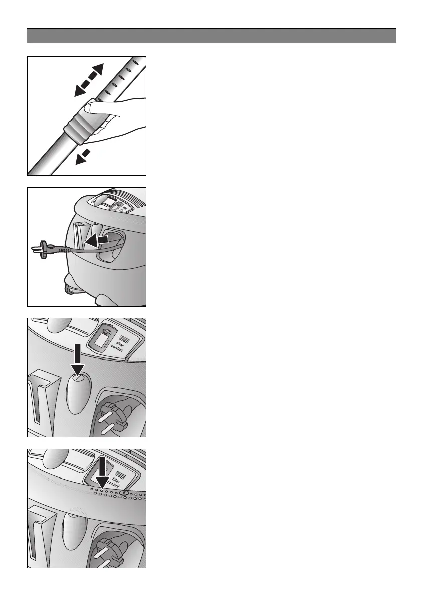 Encender el aspirador de polvo pulsando la tecla de