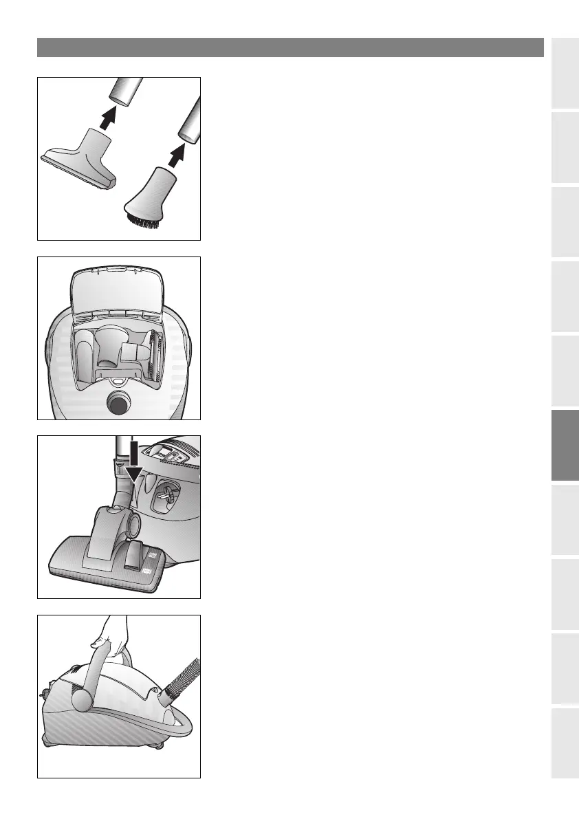 gulvmundstykket ind i falsen bag på støvsugeren.