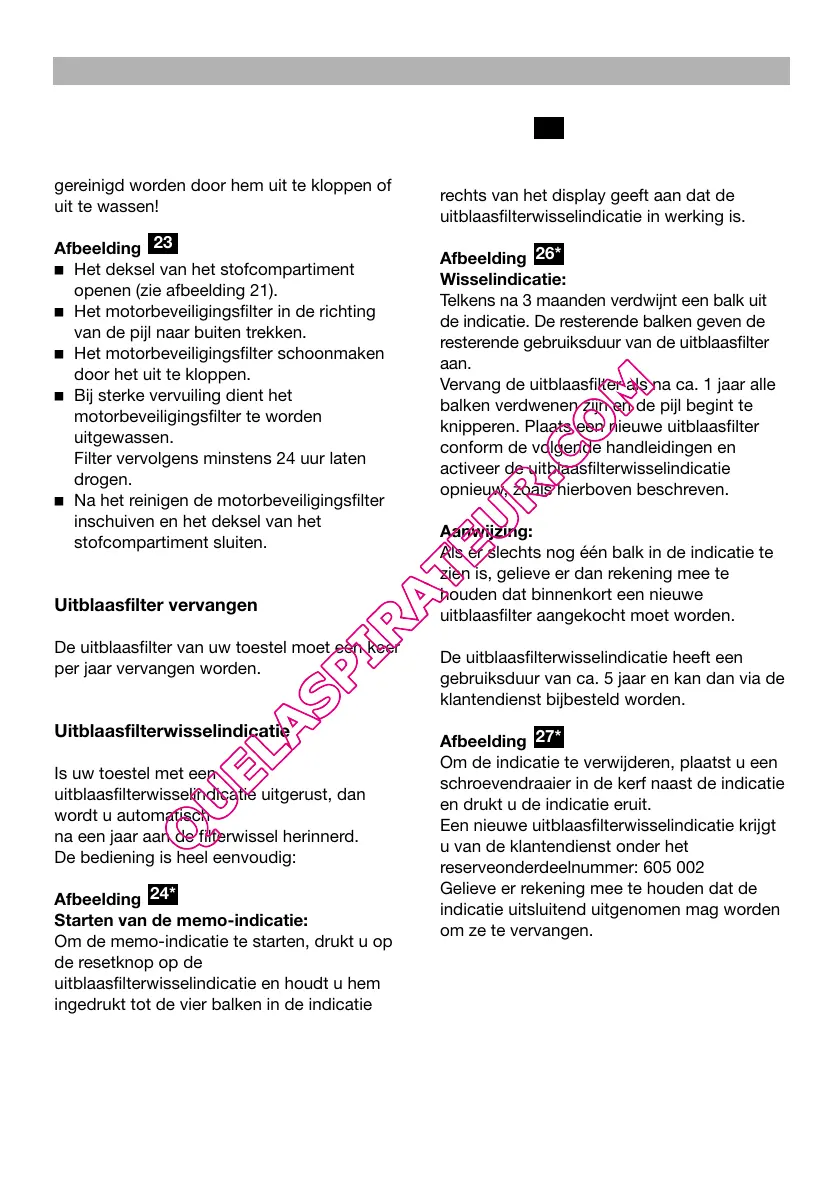 Vervang de uitblaasfilter als na ca. 1 jaar alle