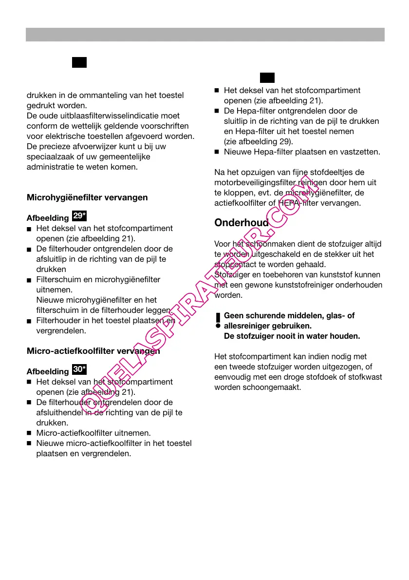 䡲 Nieuwe Hepa-filter plaatsen en vastzetten.