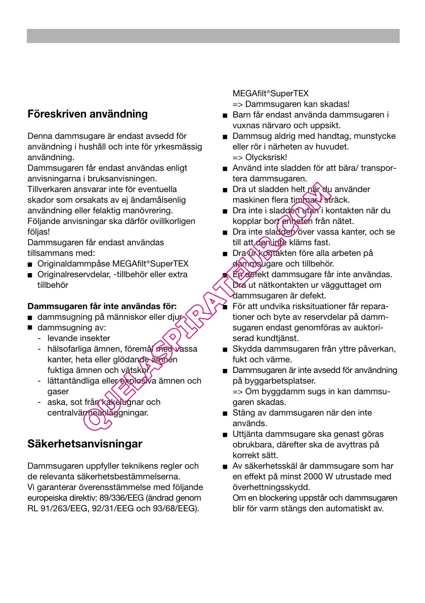 Dammsugaren får endast användas