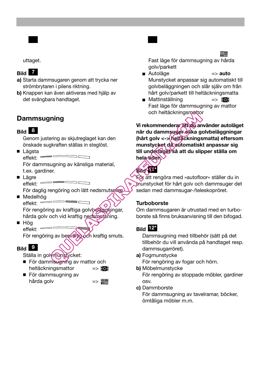 när du dammsuger olika golvbeläggningar