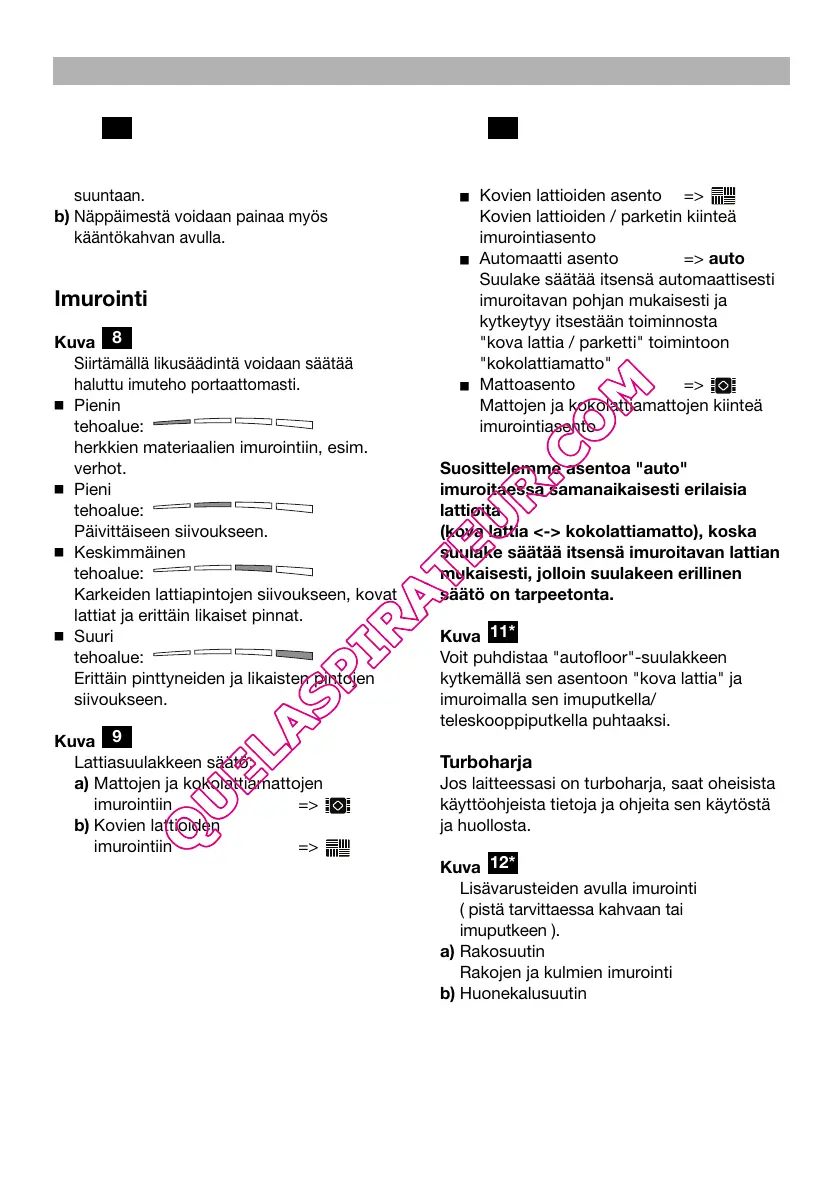 Lisävarusteiden avulla imurointi