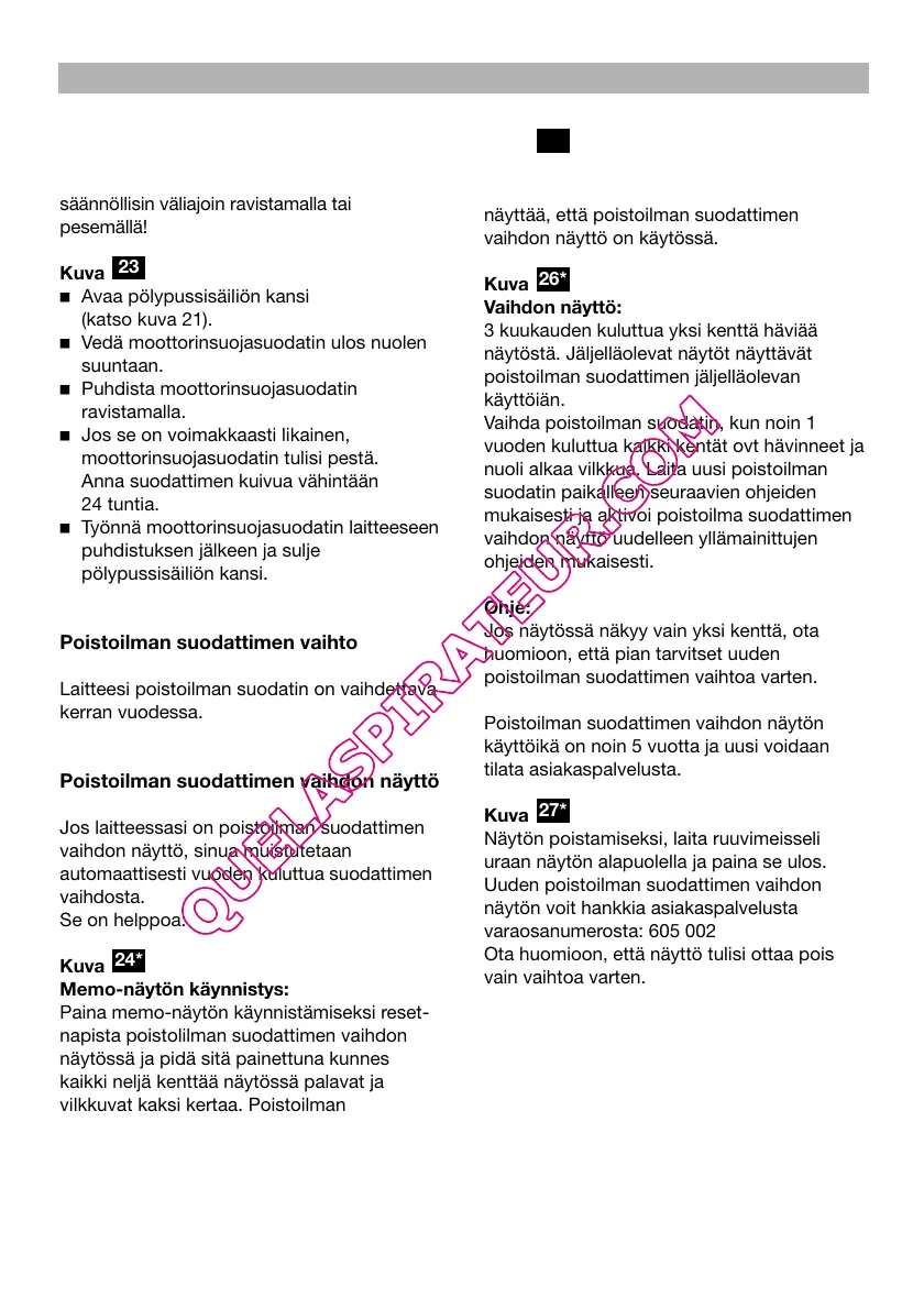 nuoli alkaa vilkkua. Laita uusi poistoilman
