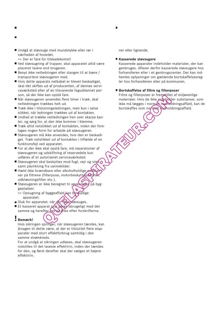 For at undgå at sikringen udløses, skal støvsugeren