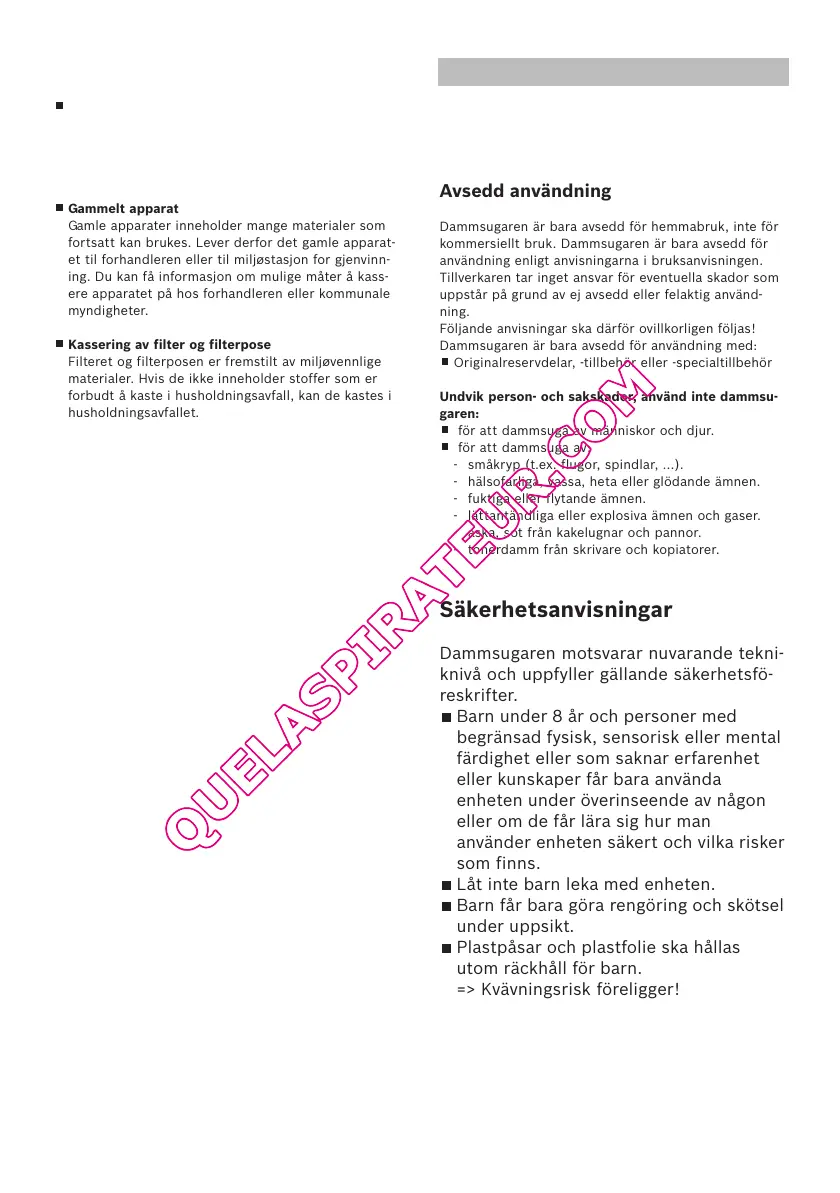 kommersiellt bruk. Dammsugaren är bara avsedd för