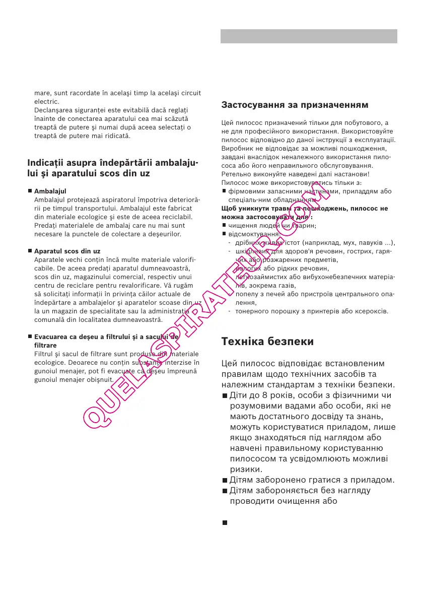 пилосос відповідно до даної інструкції з експлуатації.