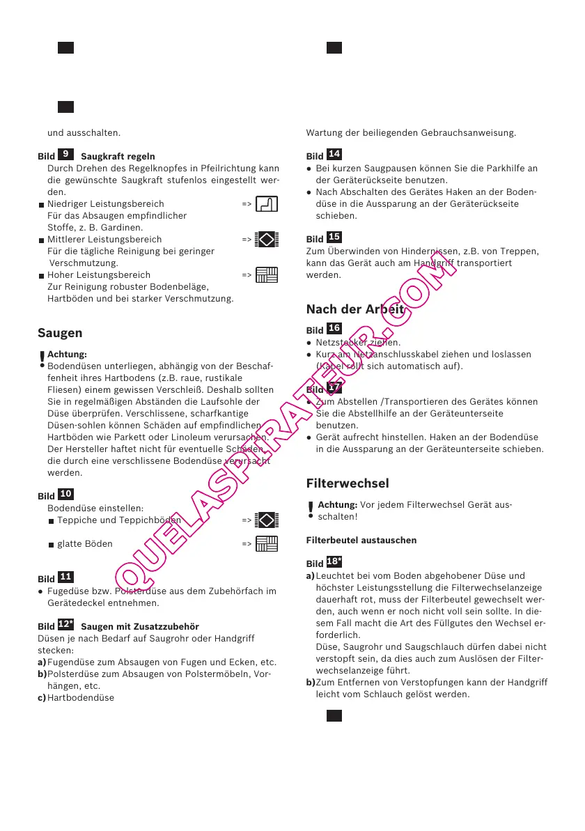● Nach Gebrauch Fugen- bzw. Polsterdüse, wieder in