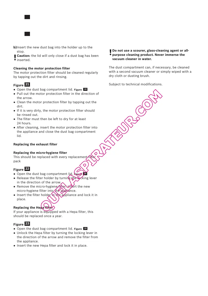 b)Insert the new dust bag into the holder up to the