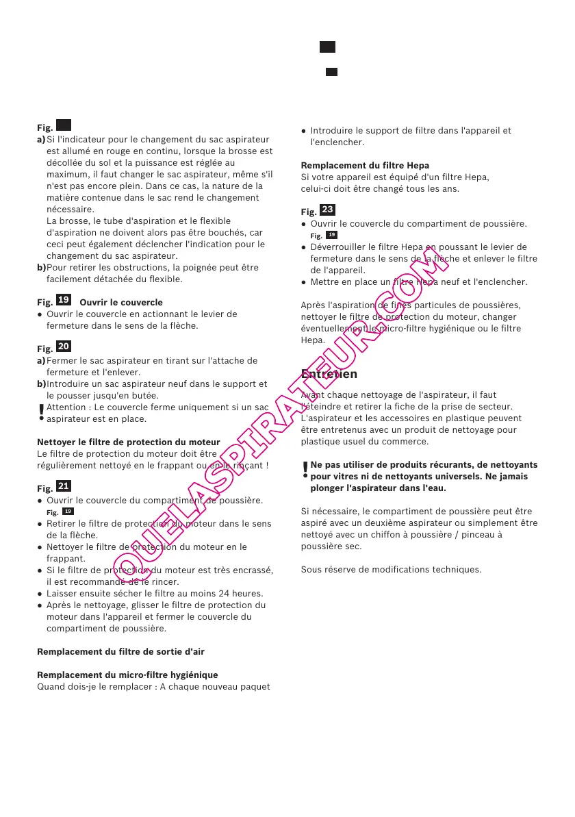 ● Enlever le micro-filtre hygiénique. Placer un micro-