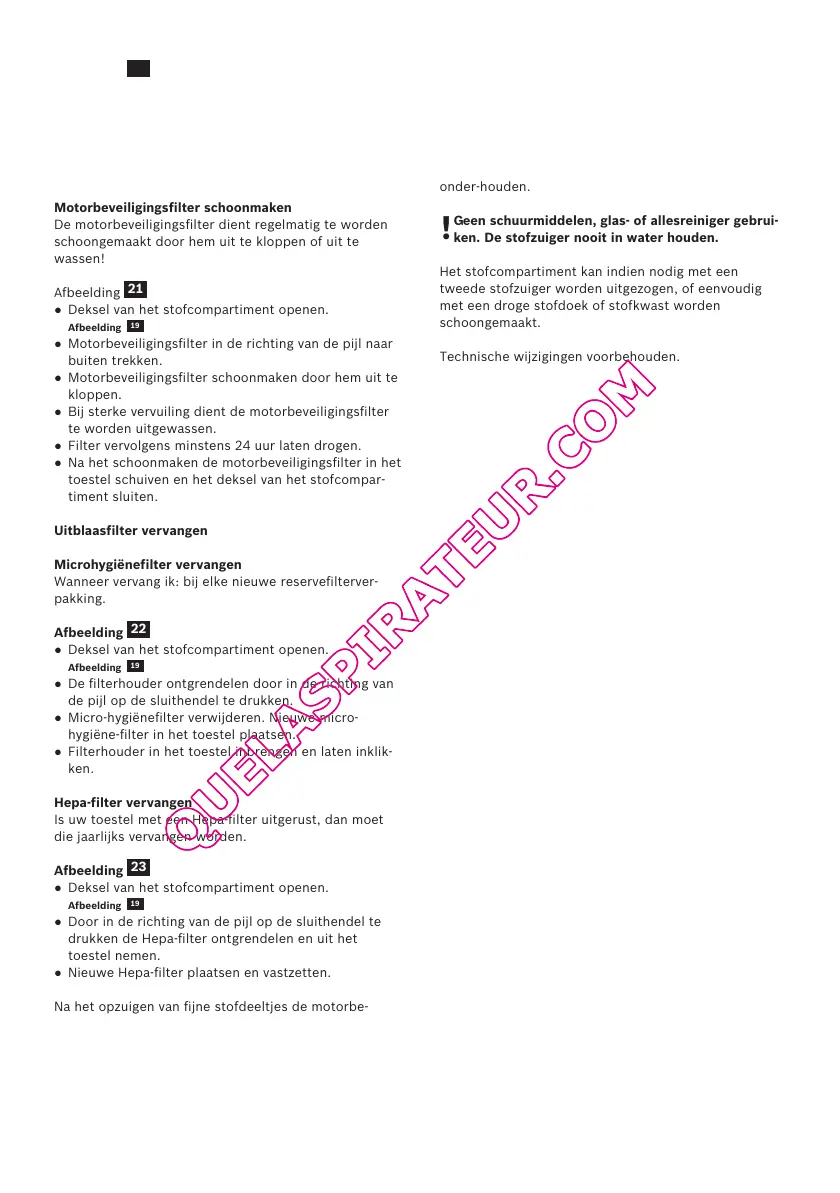 ● Bij sterke vervuiling dient de motorbeveiligingsfilter