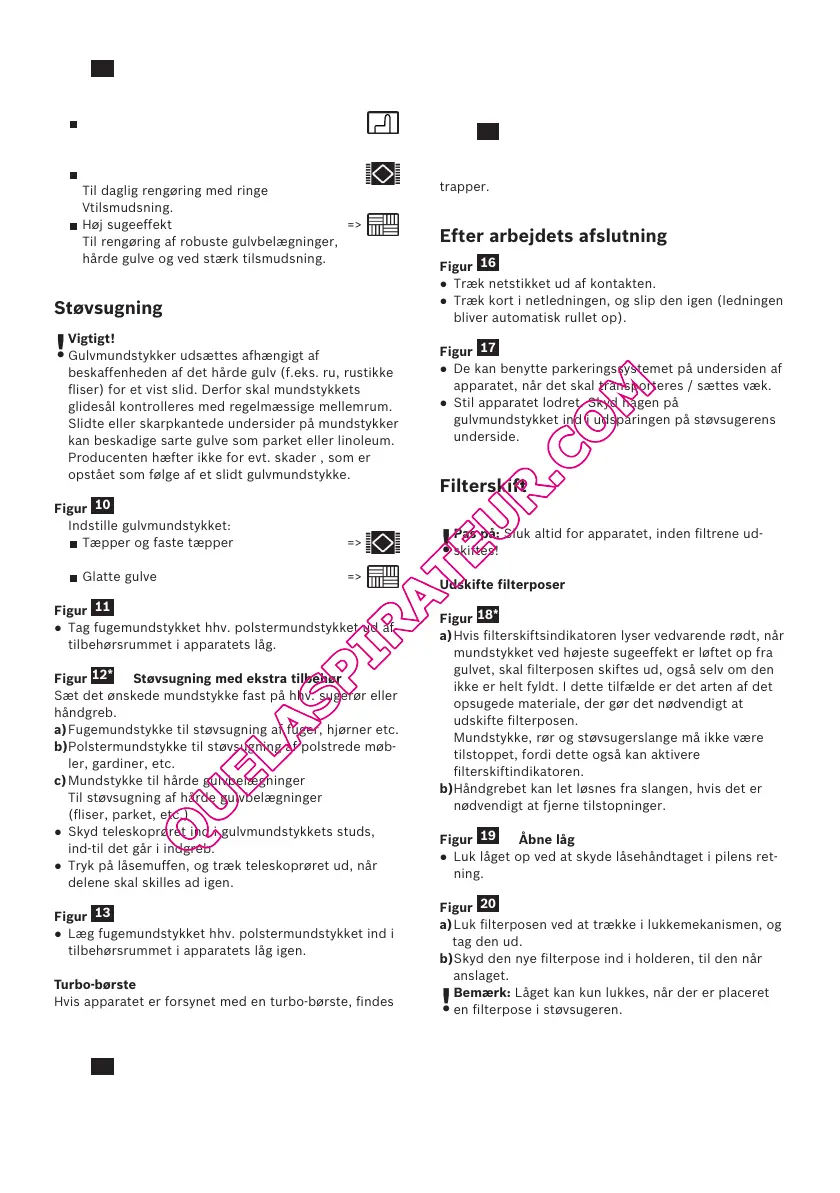 Hvis apparatet er forsynet med en turbo-børste, findes