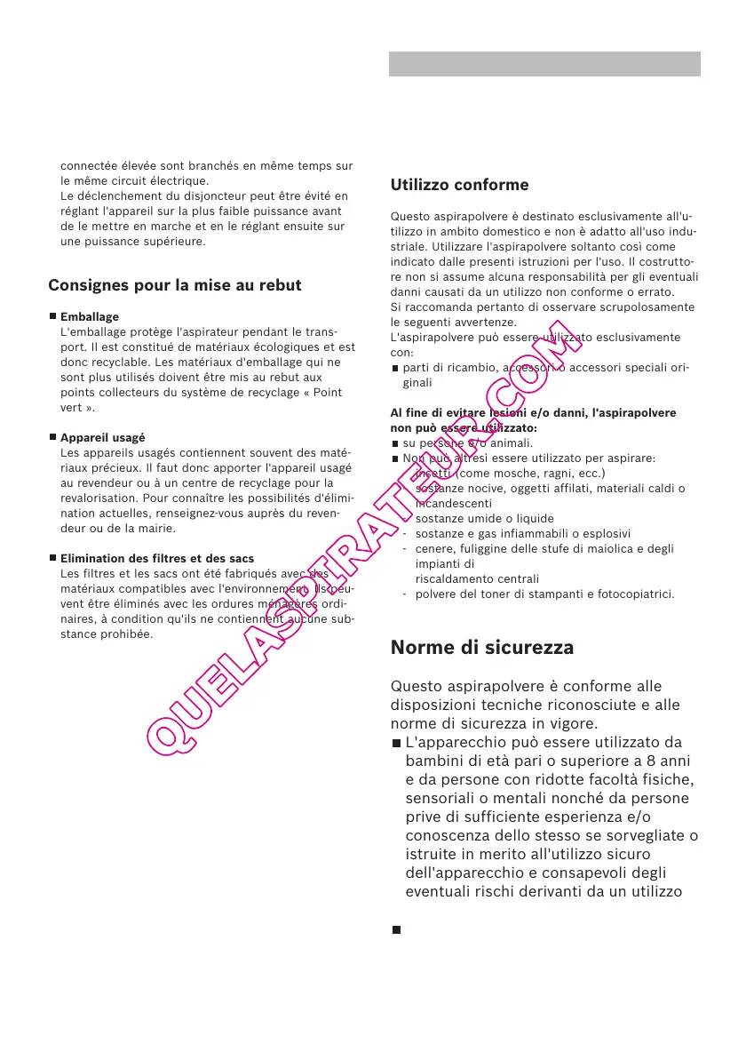 Questo aspirapolvere è destinato esclusivamente all'u-
