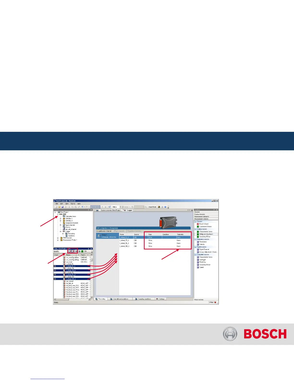 In the data area, the channels are displayed