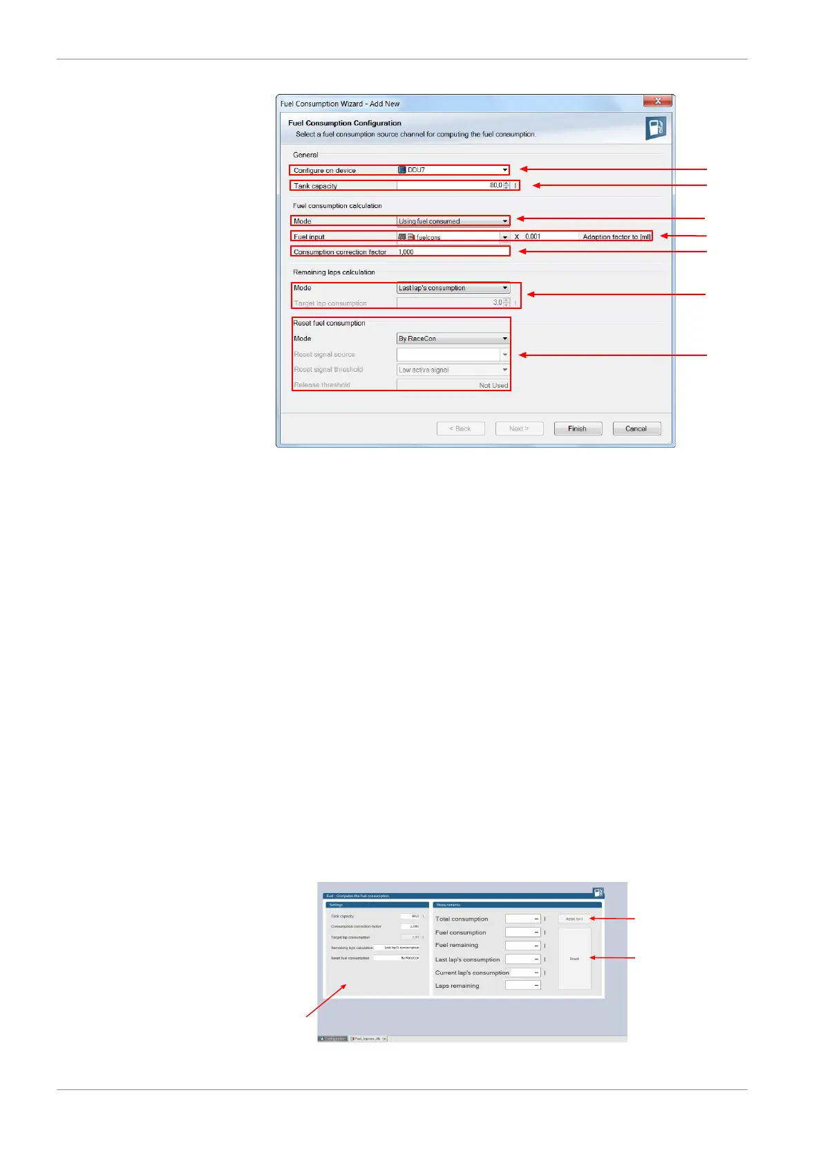 • using target lap consumption (entered in the field ‘Target lap consumption’)