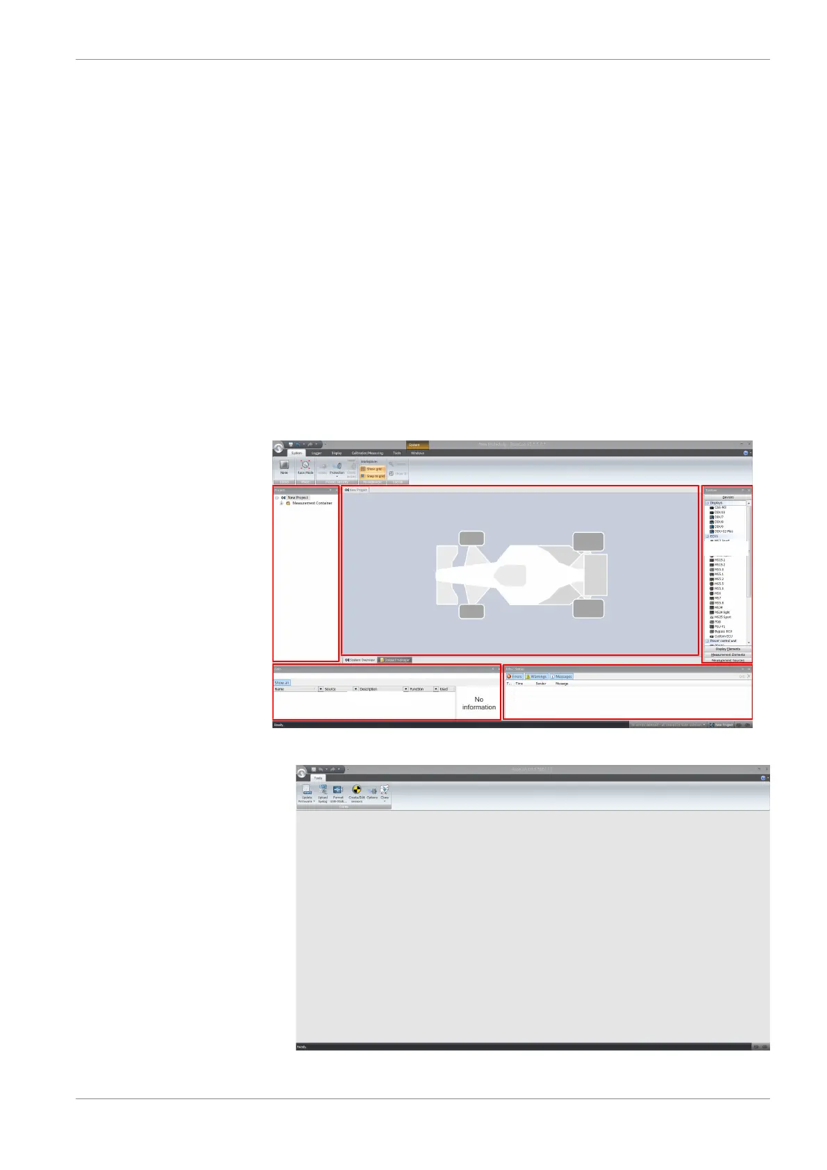 The following screenshot shows an overview of the RaceCon Main Screen with its areas.