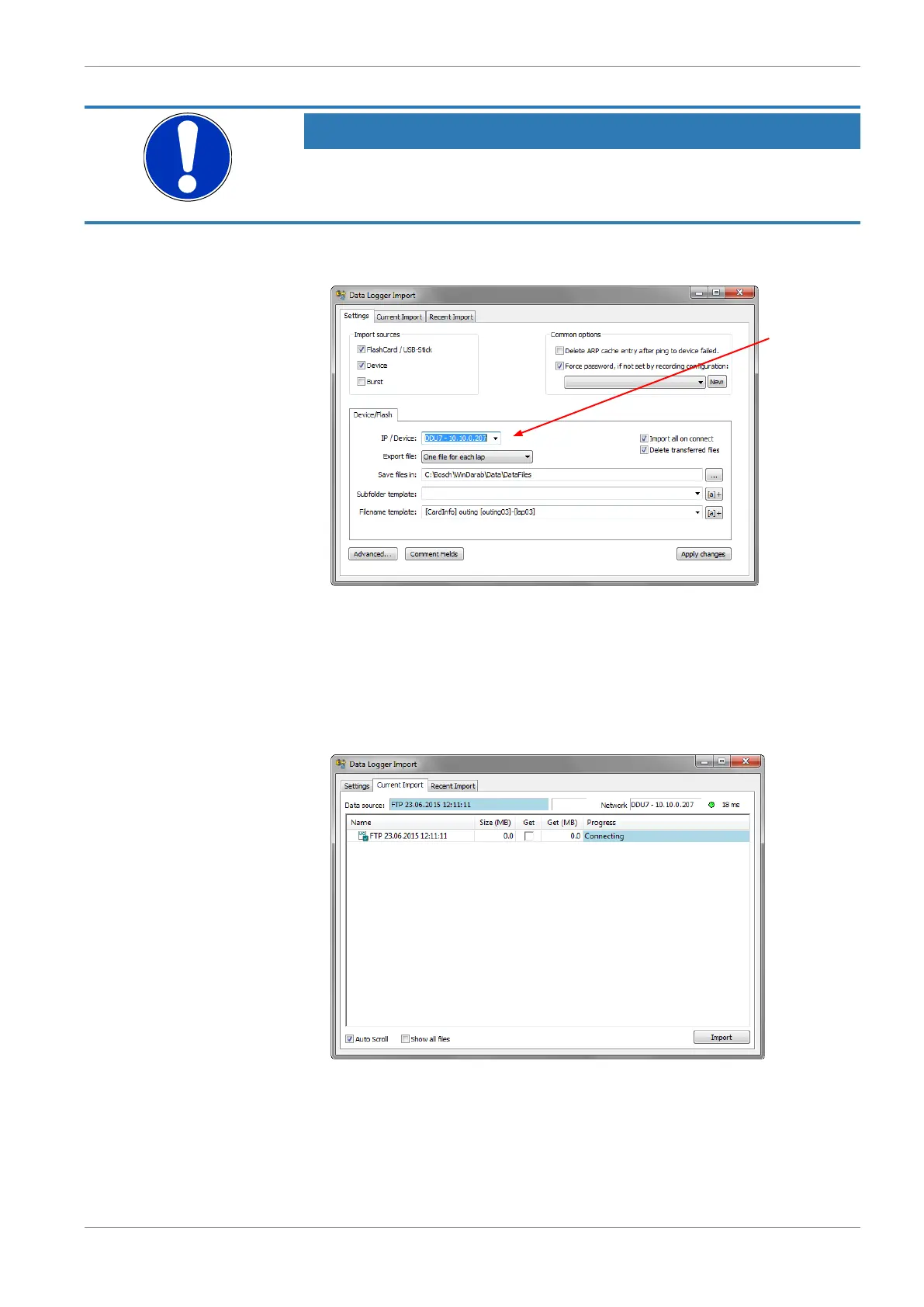 ‘Data Logger Import’ dialog and for more detailed descriptions and