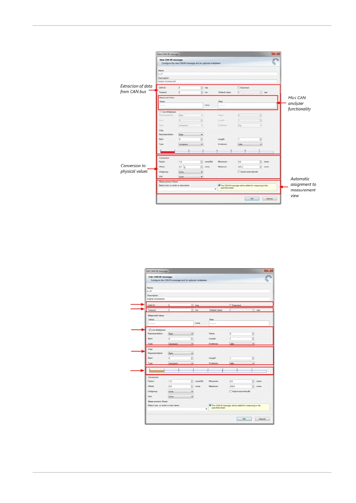 a) Enter CAN message ID. If extended IDs (29 bit) are used, check the box.