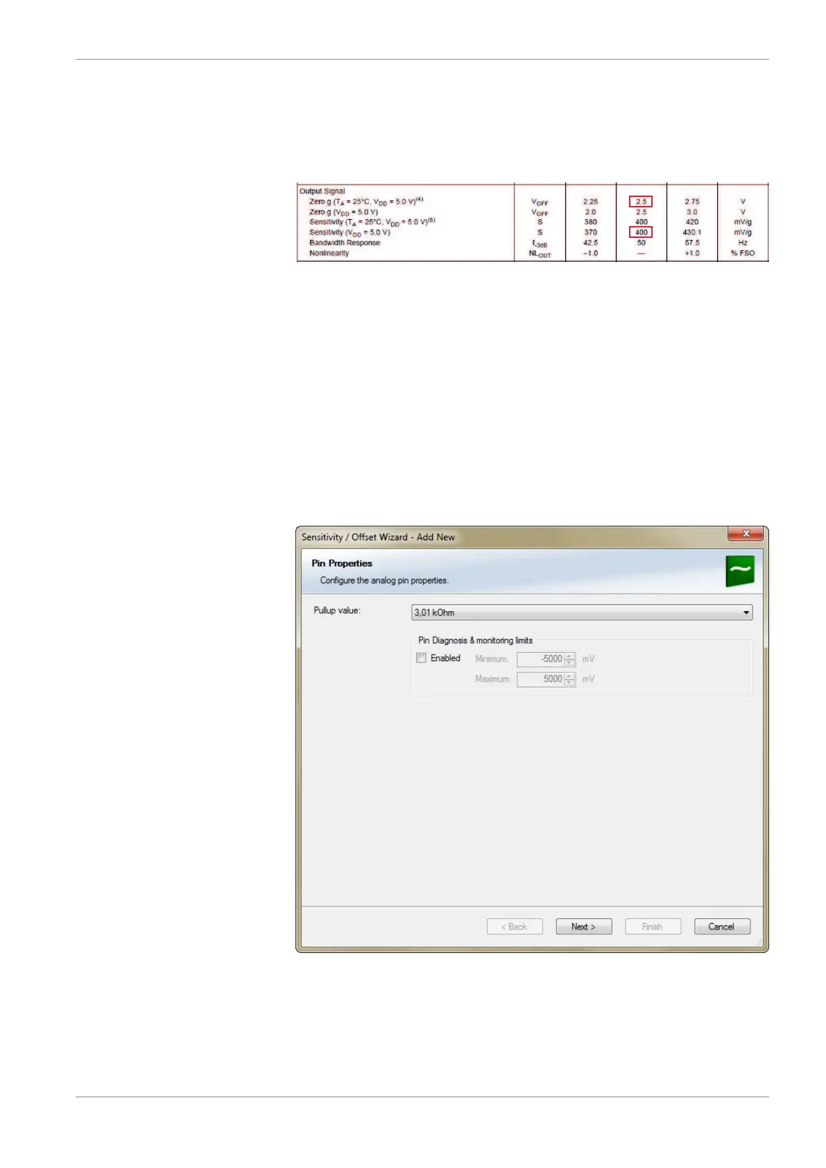 – From sensor data sheet - operating characteristics: