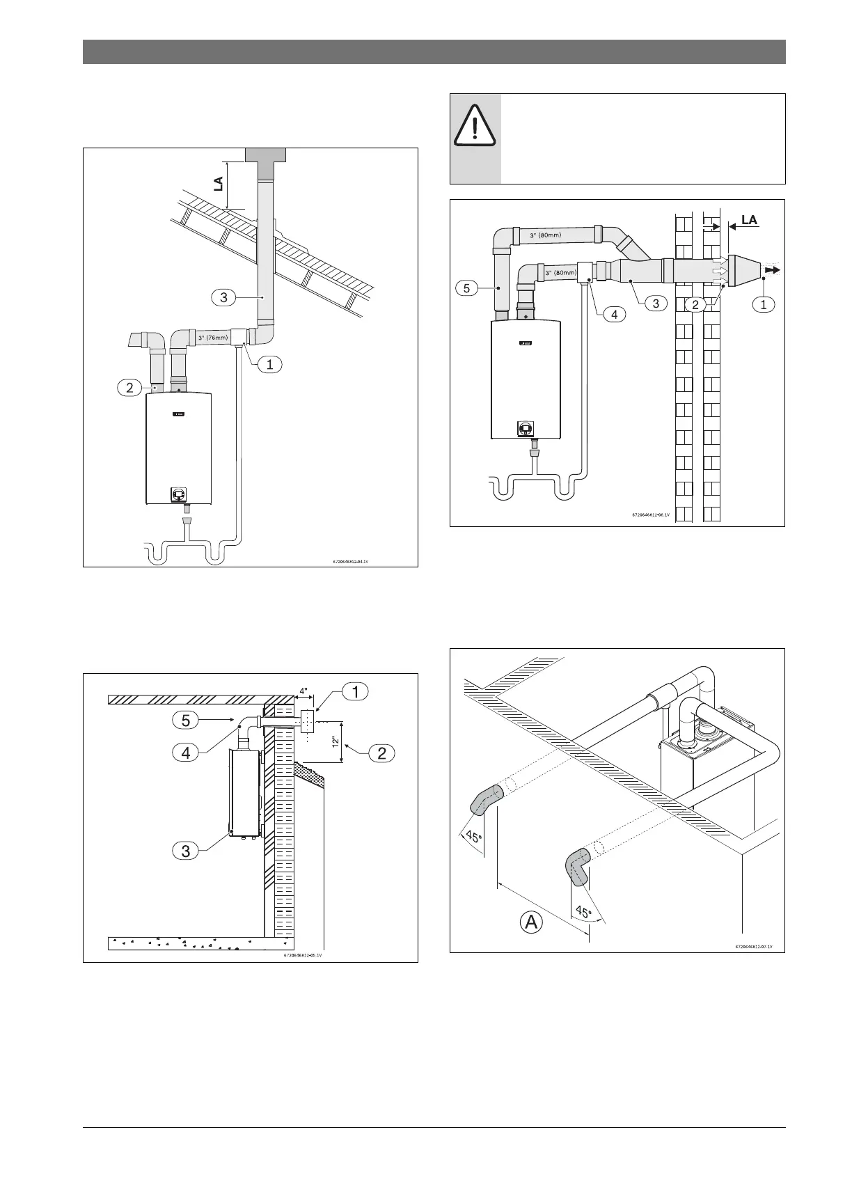 Fig. 12 Horizontal venting installation (combustion air piping not