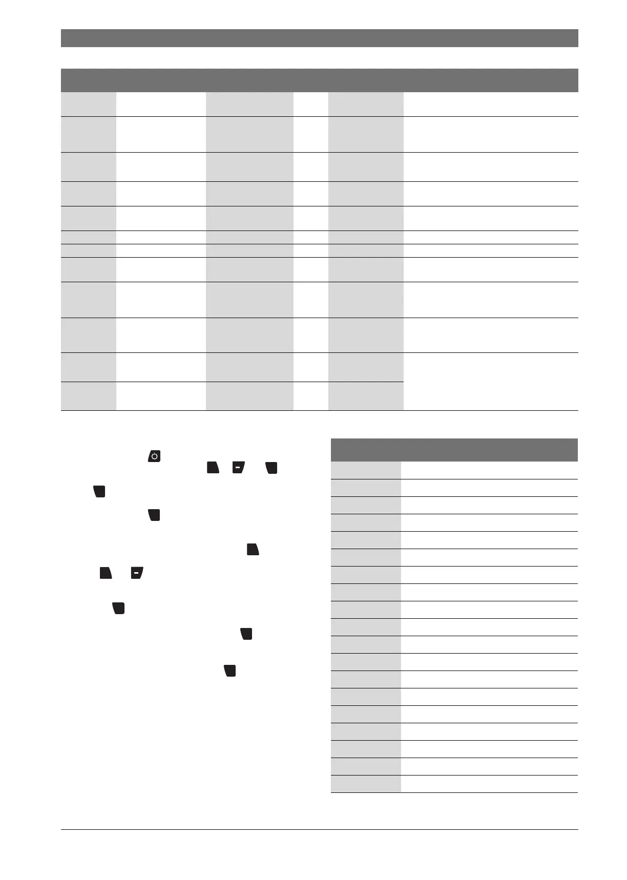 Table 34 Program values, factory default settings and ranges.
