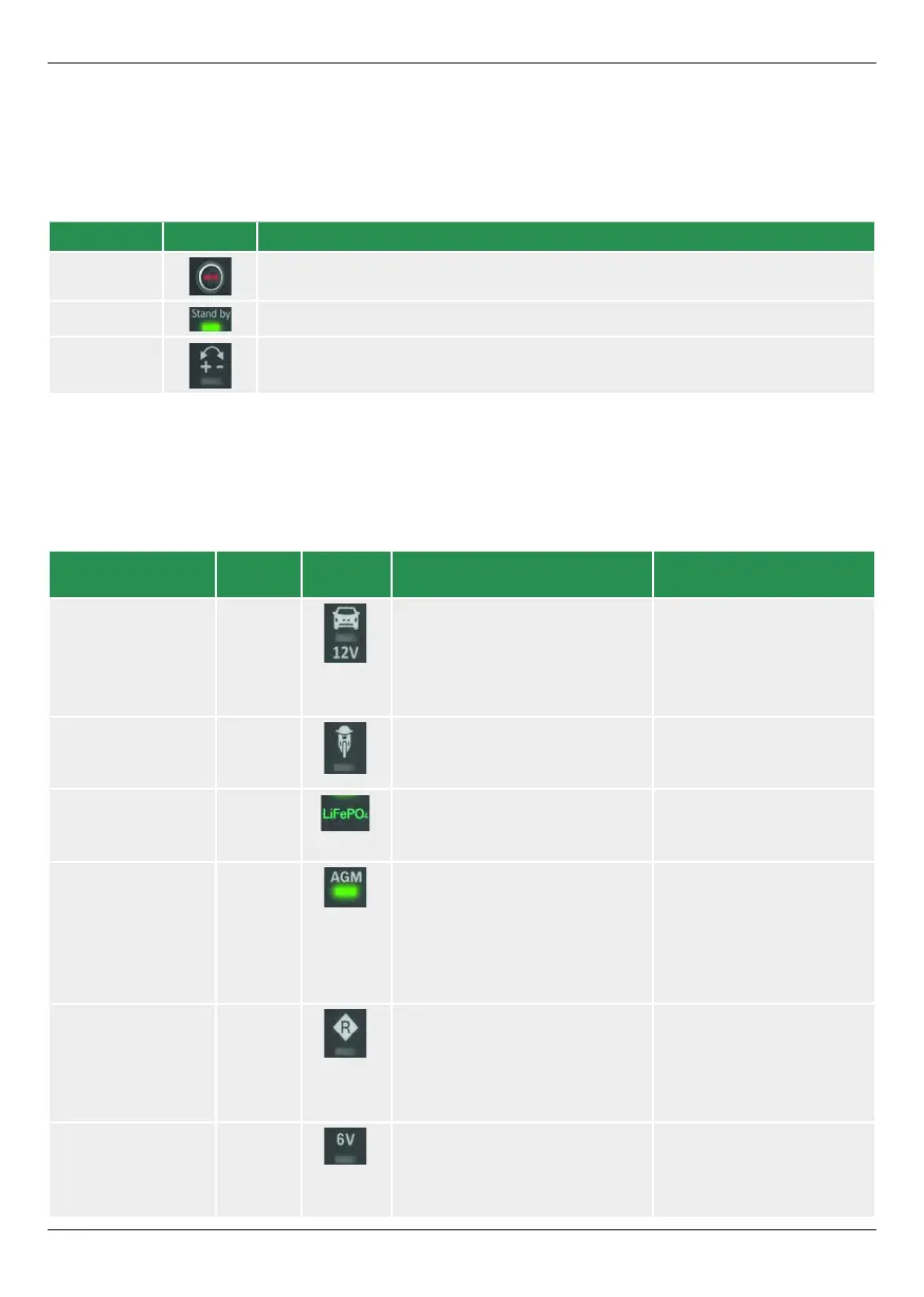 Mode Output Indicator Operation Battery types supported