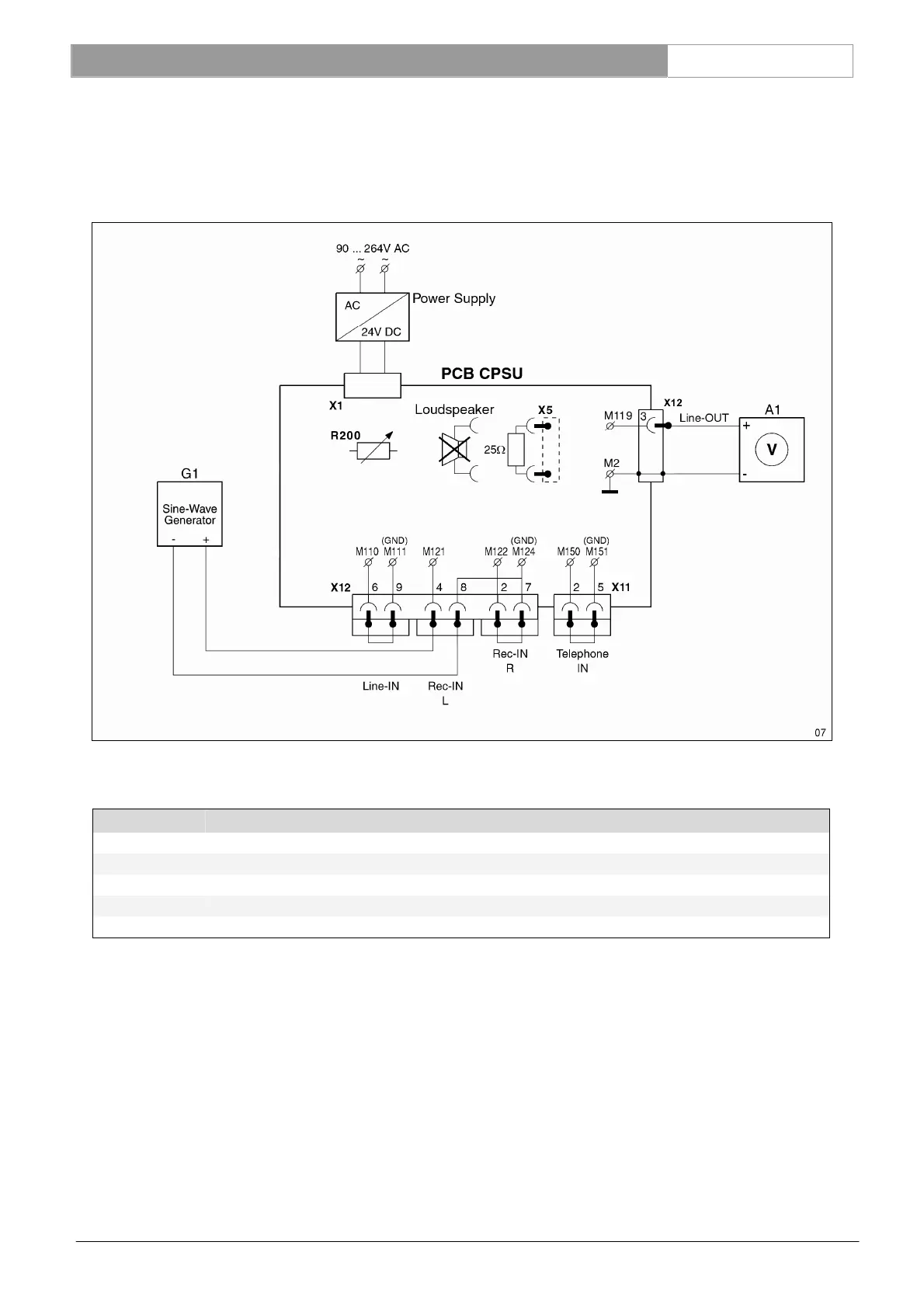 NOTE: be sure that the gain control potentiometer (R200) of the recorder input is set to the middle position.