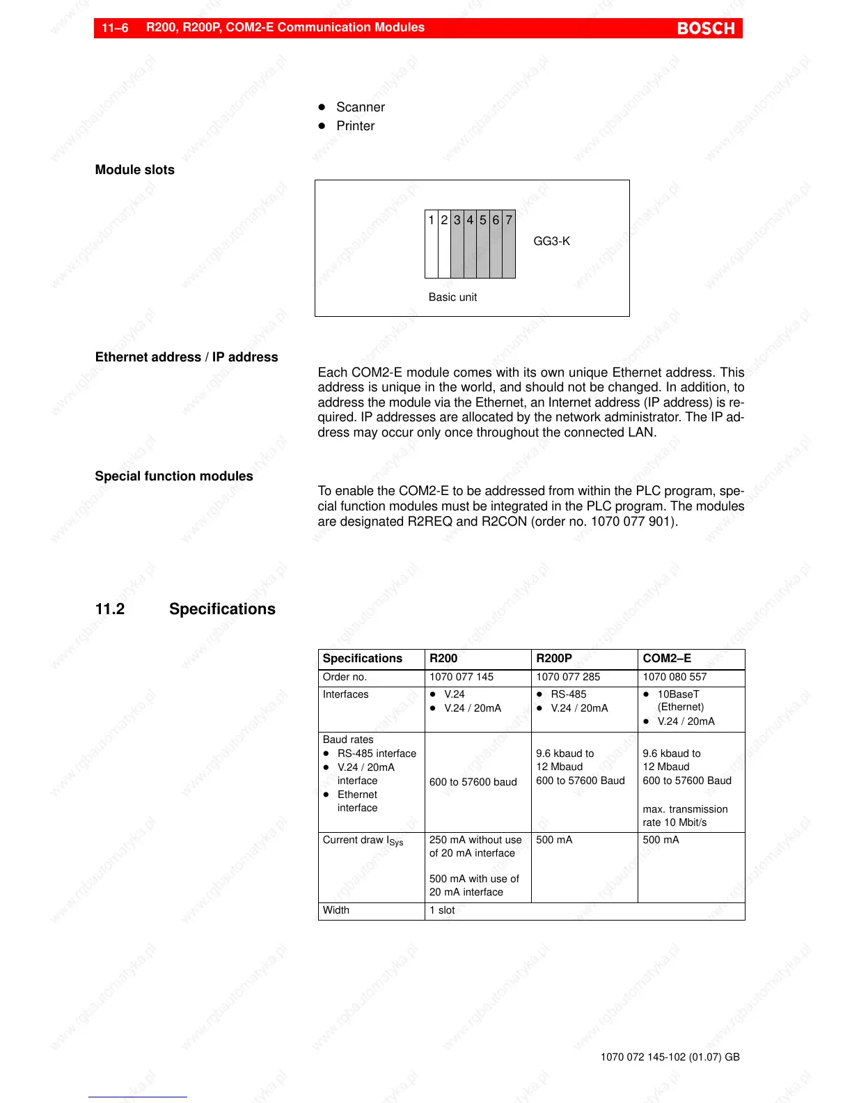 To enable the COM2-E to be addressed from within the PLC program, spe-
