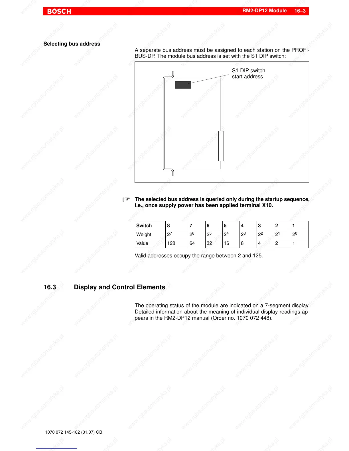 pears in the RM2-DP12 manual (Order no. 1070 072 448).