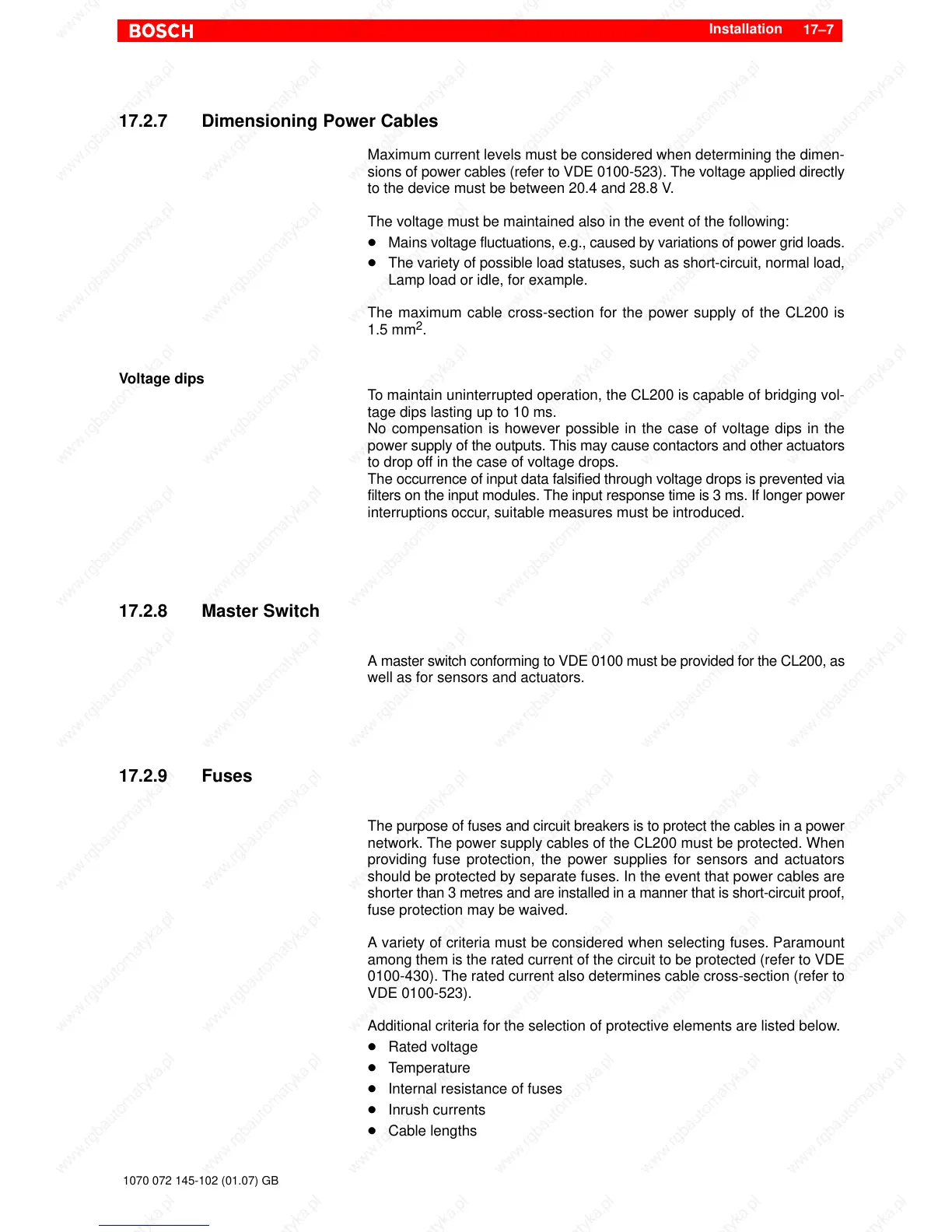 sions of power cables (refer to VDE 0100-523). The voltage applied directly