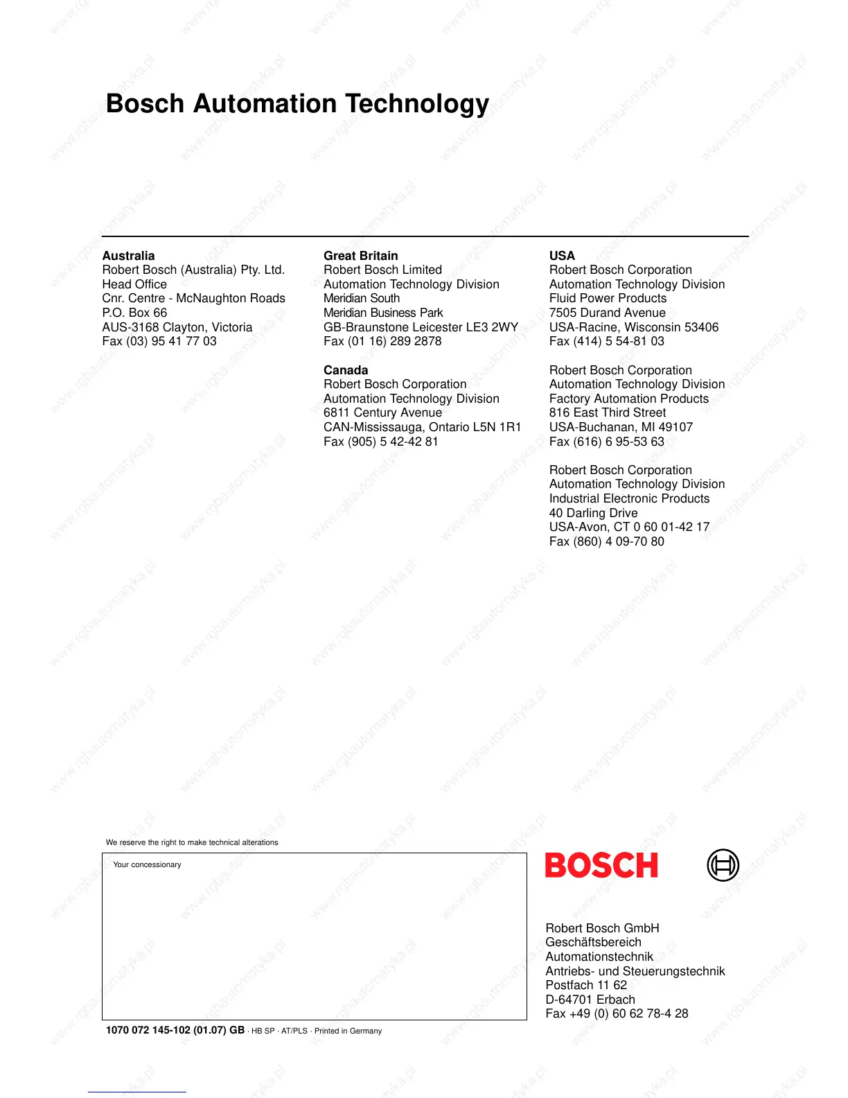 1070 072 145-102 (01.07) GB · HB SP · AT/PLS · Printed in Germany