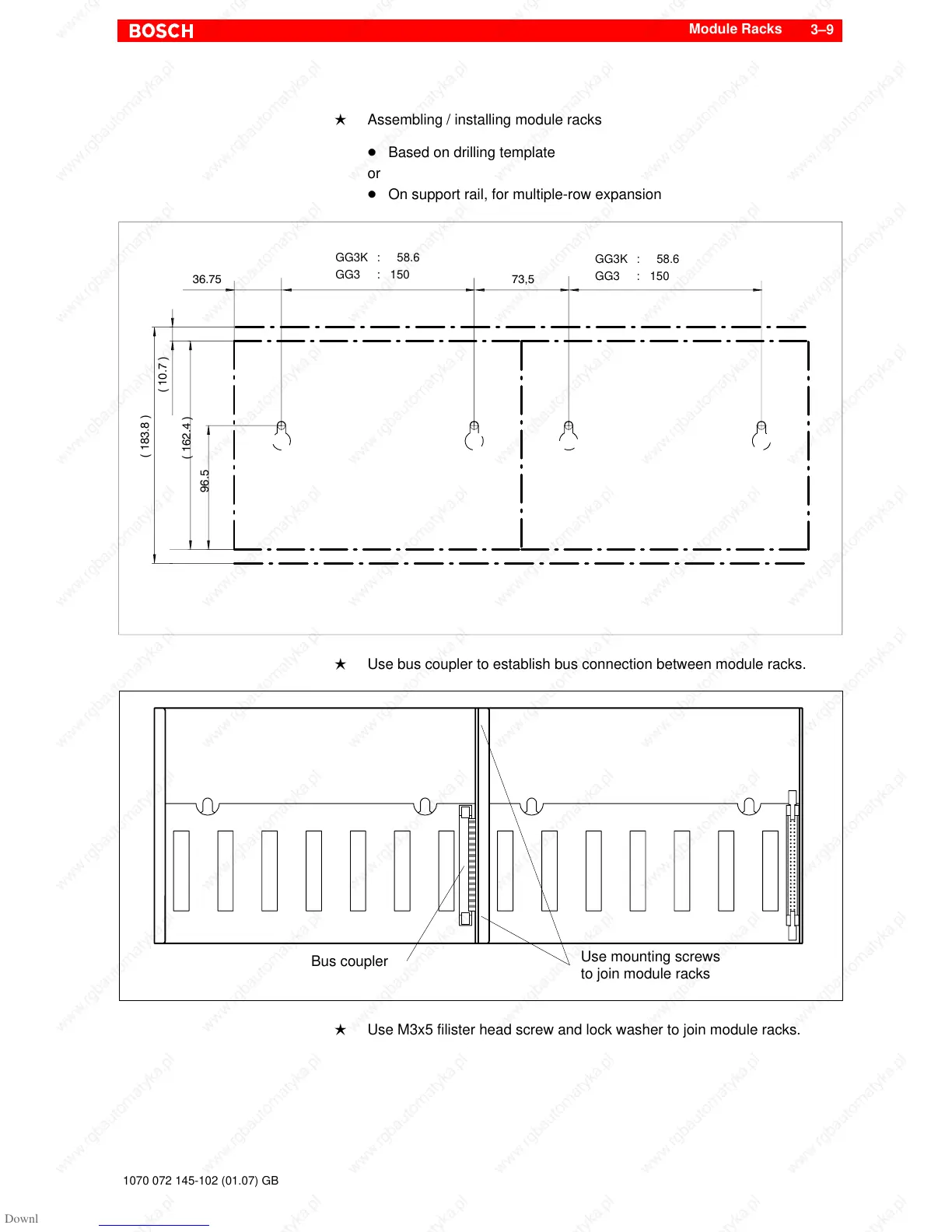 L Use M3x5 filister head screw and lock washer to join module racks.