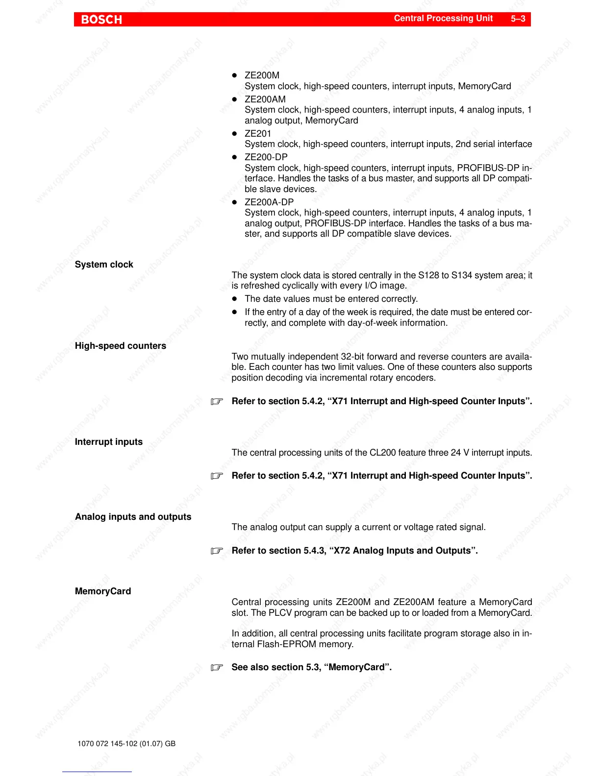 System clock, high-speed counters, interrupt inputs, PROFIBUS-DP in-